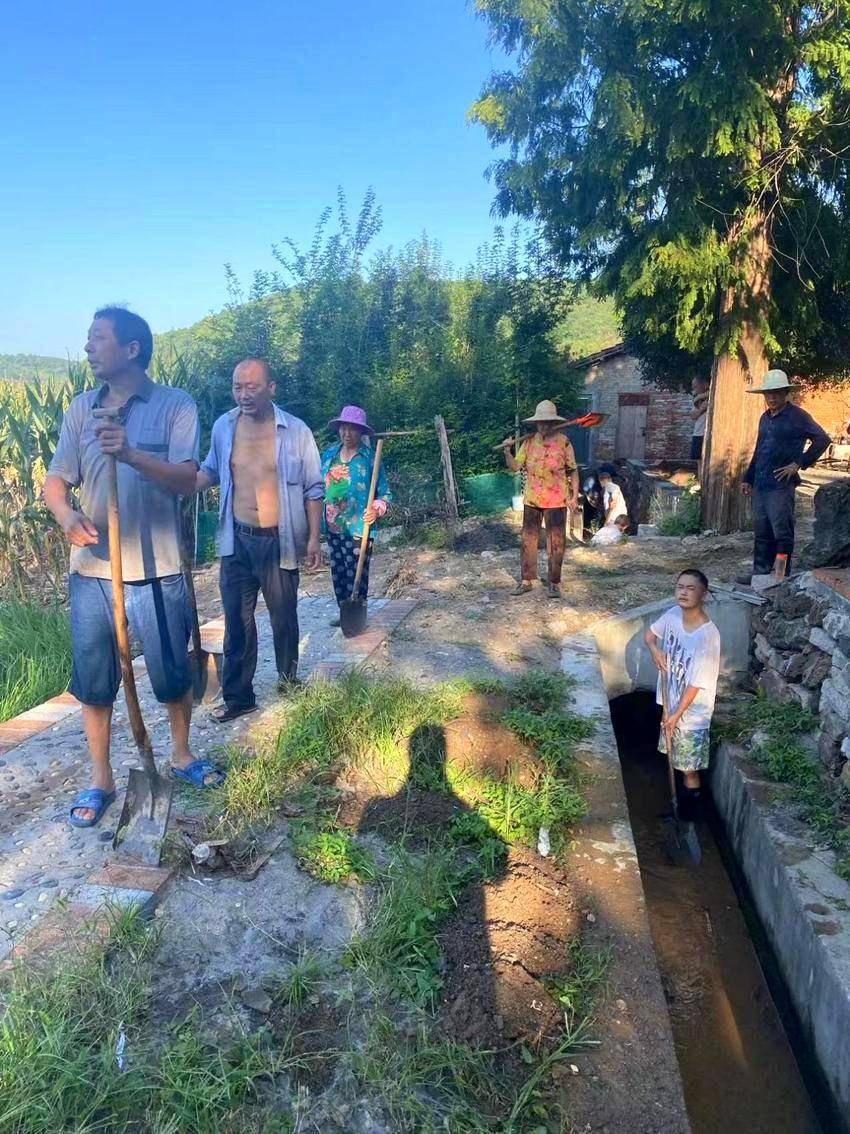 由于作業(yè)場地狹小、道路泥濘濕滑,挖機(jī)和鏟車無法進(jìn)場作業(yè),給清溝工作帶來了極大的挑戰(zhàn)。在村“兩委”的帶領(lǐng)下,村民們眾志成城,自帶工具,熱火朝天地投入到清溝工作中。他們彎著腰,在渾濁的泥水中艱難勞作,一點(diǎn)點(diǎn)地疏通被堵塞的溝渠。