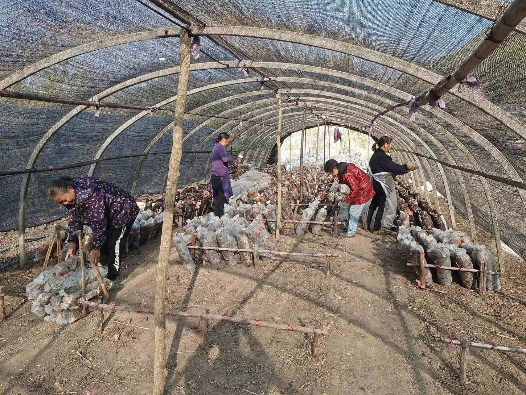 12月31日,村“兩委”和駐村工作隊(duì)主動(dòng)幫助村民生產(chǎn)袋料香菇菌棒。在三組易治宏家場地上,堆滿了木屑、石膏、麩皮等香菇菌棒的生產(chǎn)原料,工人們一鍬鍬往攪拌機(jī)里送料。一臺全自動(dòng)裝袋機(jī)全力開動(dòng),裝袋和封袋作業(yè)一氣呵成。一袋袋菌棒被送入滅菌場,堆放得整整齊齊、穩(wěn)穩(wěn)當(dāng)當(dāng),生產(chǎn)場面有條不紊、一片火熱。