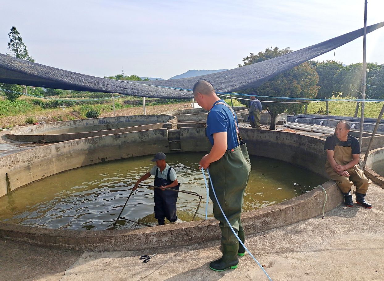 當(dāng)天,專(zhuān)業(yè)合作社空氣中彌漫著淡淡的水腥味,池塘邊、孵化池內(nèi)都是一片熱火朝天的工作景象。