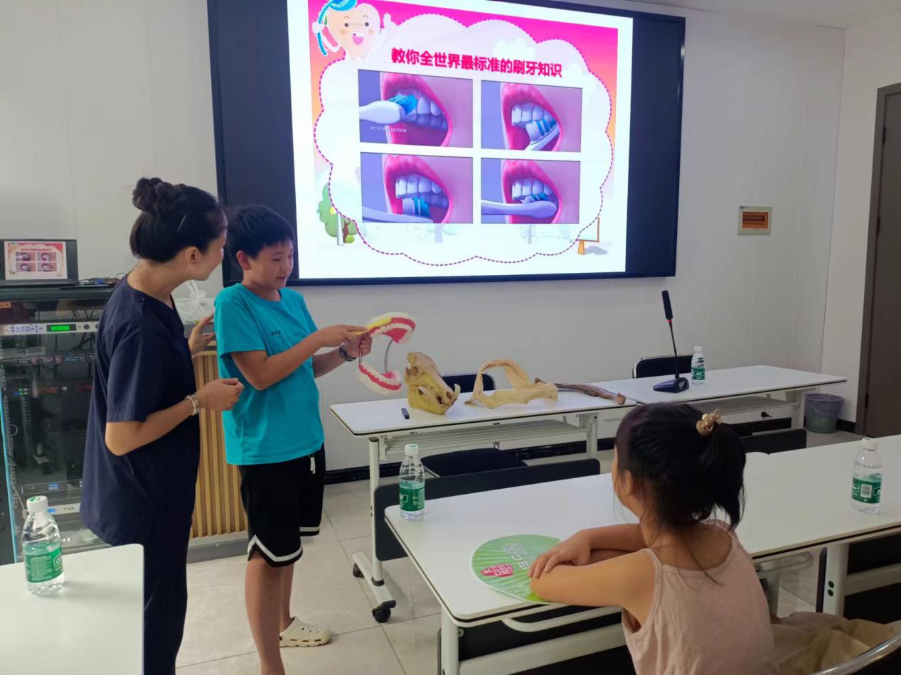 7月18日下午,新市街道新陽社區(qū)聯(lián)合市京小白口腔醫(yī)院,為轄區(qū)青少年及家長朋友們舉辦了一堂兒童口腔保健知識講座。講座現(xiàn)場,主講醫(yī)師針對兒童口腔存在的普遍問題,用生動形象的語言從牙齒的生長特點、兒童口腔常