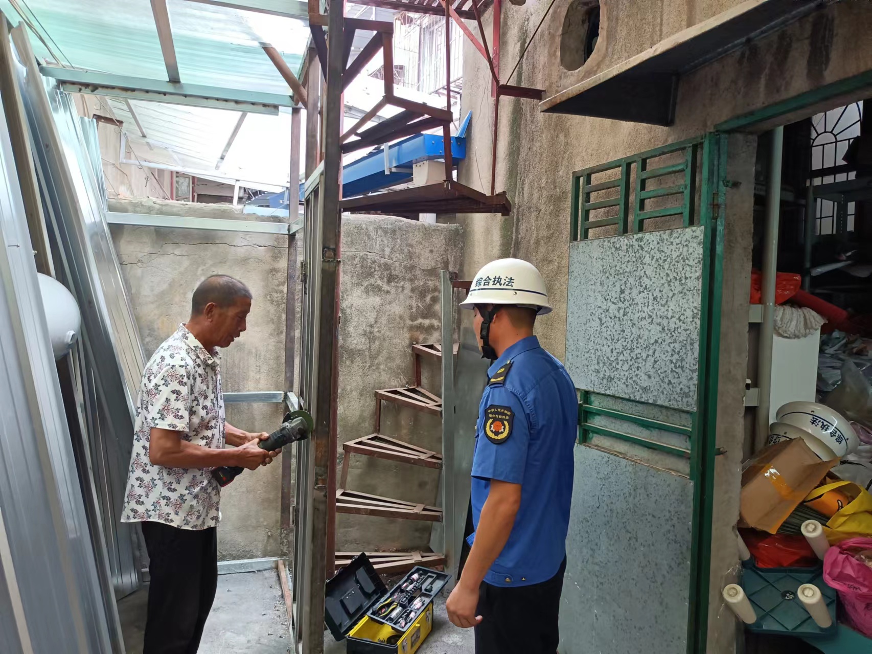 6月17日,新市街道經(jīng)過(guò)多日調(diào)解,成功勸導(dǎo)市民金某將位于興業(yè)步行街內(nèi)違法搭建的一處鋼構(gòu)棚自行予以拆除。6月14日上午,新市街道綜合執(zhí)法中心執(zhí)法人員收到市民電話投訴,反映新市街道興業(yè)步行街某商鋪后門有人
