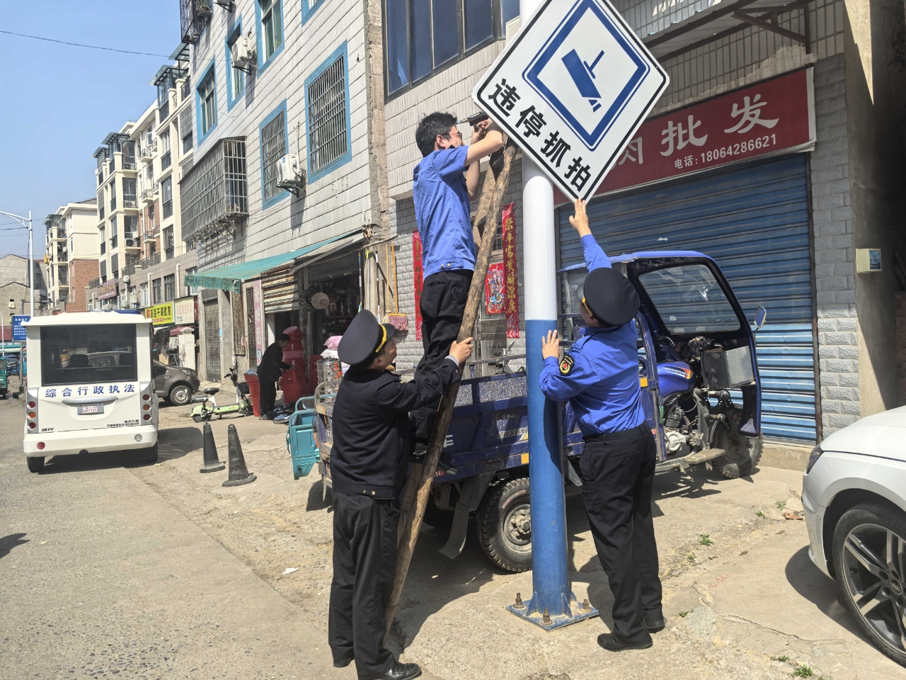 3月24日上午,新市街道綜合執(zhí)法中心隊(duì)員在日常巡邏中發(fā)現(xiàn),綠林路陽(yáng)光麗苑路段的一處交警違停拍照警示牌隨風(fēng)晃動(dòng),搖搖欲墜,存在安全隱患。