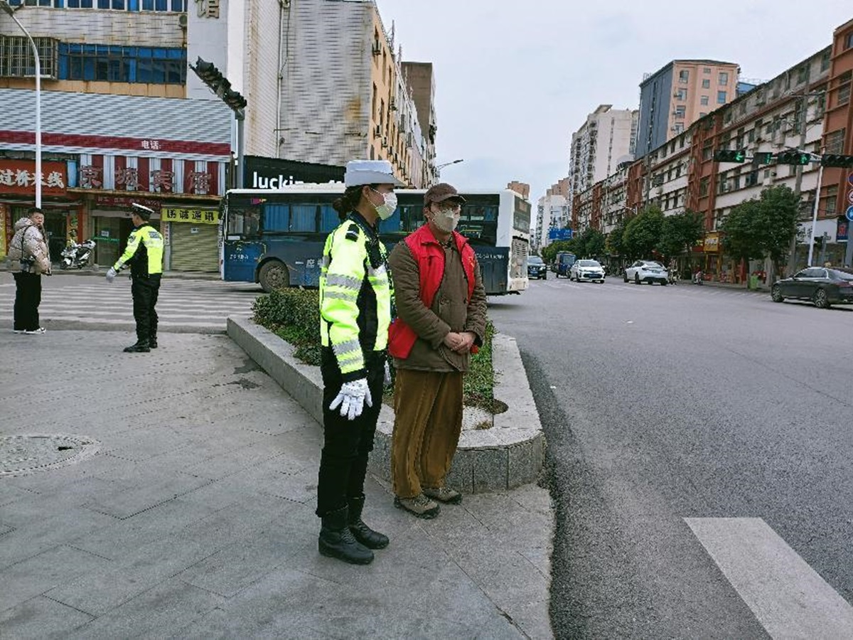 1月22日下午,新市街道云杜社區(qū)聯(lián)合交警組織大學(xué)生志愿者開展交通勸導(dǎo)活動。勸導(dǎo)活動以“文明出行,從我做起”為主題?;顒又?,身穿紅馬甲的志愿者們分組站在的人行橫道兩端,引導(dǎo)來往的群眾遵循“紅燈停、綠燈行