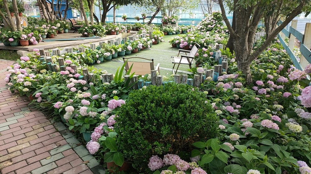 | 新市街道白谷洞村5000盆繡球花競(jìng)相開放 |