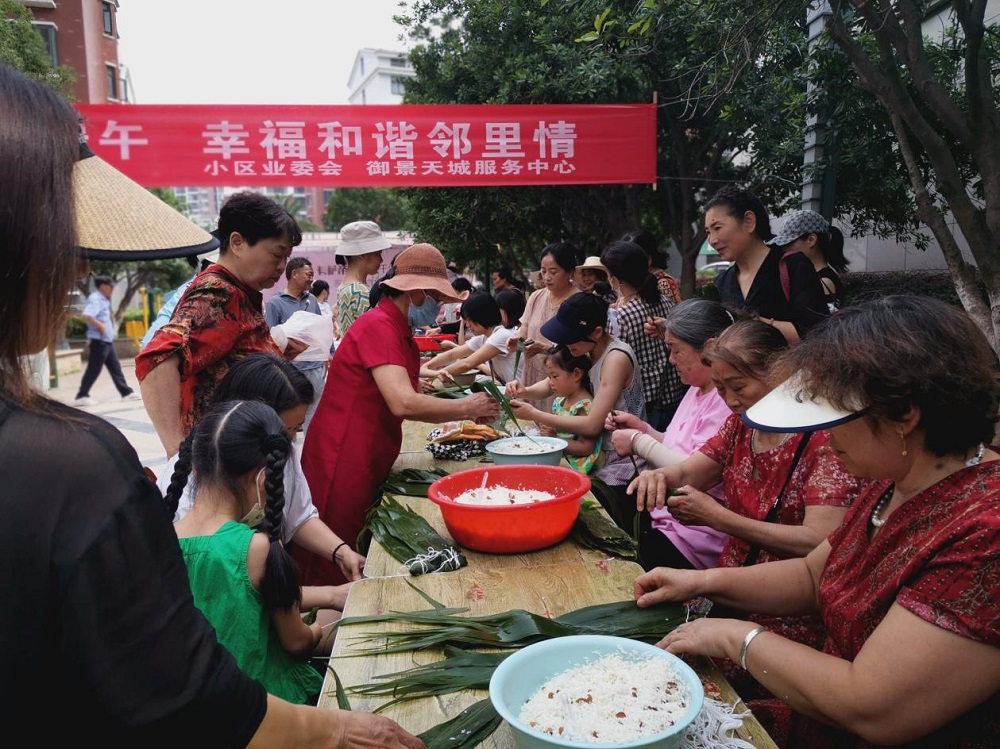 6月11日上午,新市街道青年路社區(qū)黨總支聯(lián)合新芳華物業(yè)、御景天城業(yè)委會(huì),組織小區(qū)居民在御景天城小廣場(chǎng)舉行了“粽葉飄香迎端午 幸福和諧鄰里情”主題活動(dòng),共有100多人參加此次活動(dòng)?;顒?dòng)現(xiàn)場(chǎng),分為體驗(yàn)、比