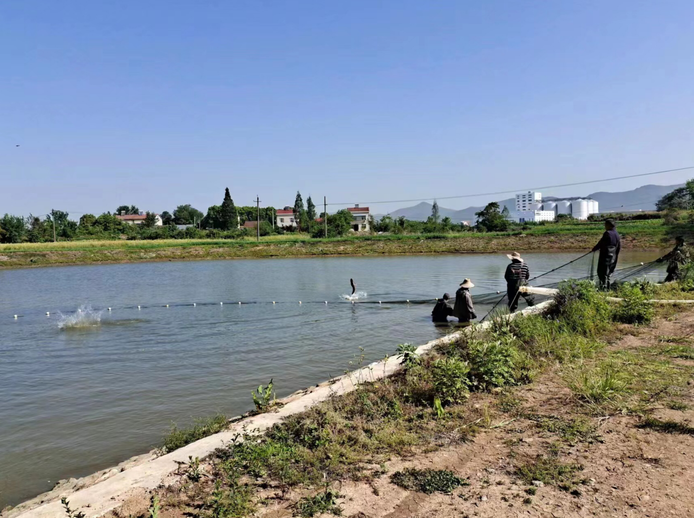 工人們正在拉網(wǎng)收魚 5月1日早上6點(diǎn),地處新市街道高嶺村七組的“京山惠強(qiáng)水產(chǎn)苗種繁育專業(yè)合作社”魚苗人工繁殖基地一片忙碌,一年一度的魚苗人工繁殖正在進(jìn)行。 技工們在拖網(wǎng)收集親魚,理事長孫林學(xué)