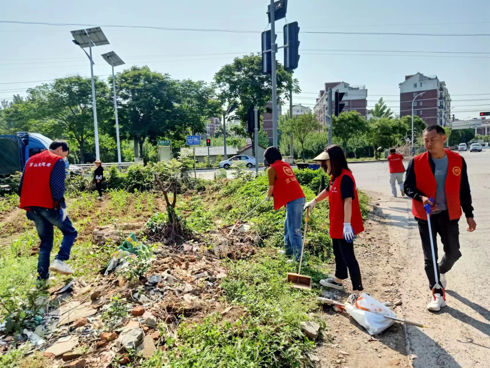 (志愿者服務(wù)隊(duì)正在進(jìn)行環(huán)境整治) 5月9日上午,為推進(jìn)美好環(huán)境與幸福生活共同締造活動走深走實(shí),新市街道鳳凰堰社區(qū)號召居民群眾成立共同締造環(huán)保衛(wèi)士志愿者服務(wù)隊(duì),到居民點(diǎn)開展環(huán)境衛(wèi)生整治活動?! ∩鐓^(qū)工