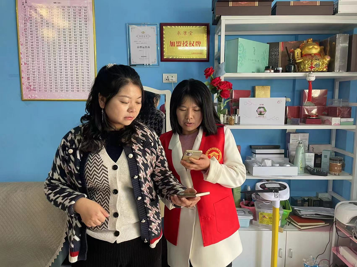(網(wǎng)格員講解辦證流程)3月21日,社區(qū)兩委干部、網(wǎng)格員兩人一組到轄區(qū)商鋪逐戶摸排查看是否存在無證經(jīng)營、證件過期等現(xiàn)象,發(fā)現(xiàn)類似問題及時(shí)督促經(jīng)銷商到社區(qū)辦理營業(yè)執(zhí)照。自從全市開展市場(chǎng)主體培育,壯大發(fā)展市