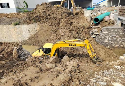 6月12日,在永興街道群光村道路修復(fù)現(xiàn)場(chǎng),機(jī)械轟鳴不斷,數(shù)名施工人員正在有條不紊地清理泥渣、鋪裝水泥。