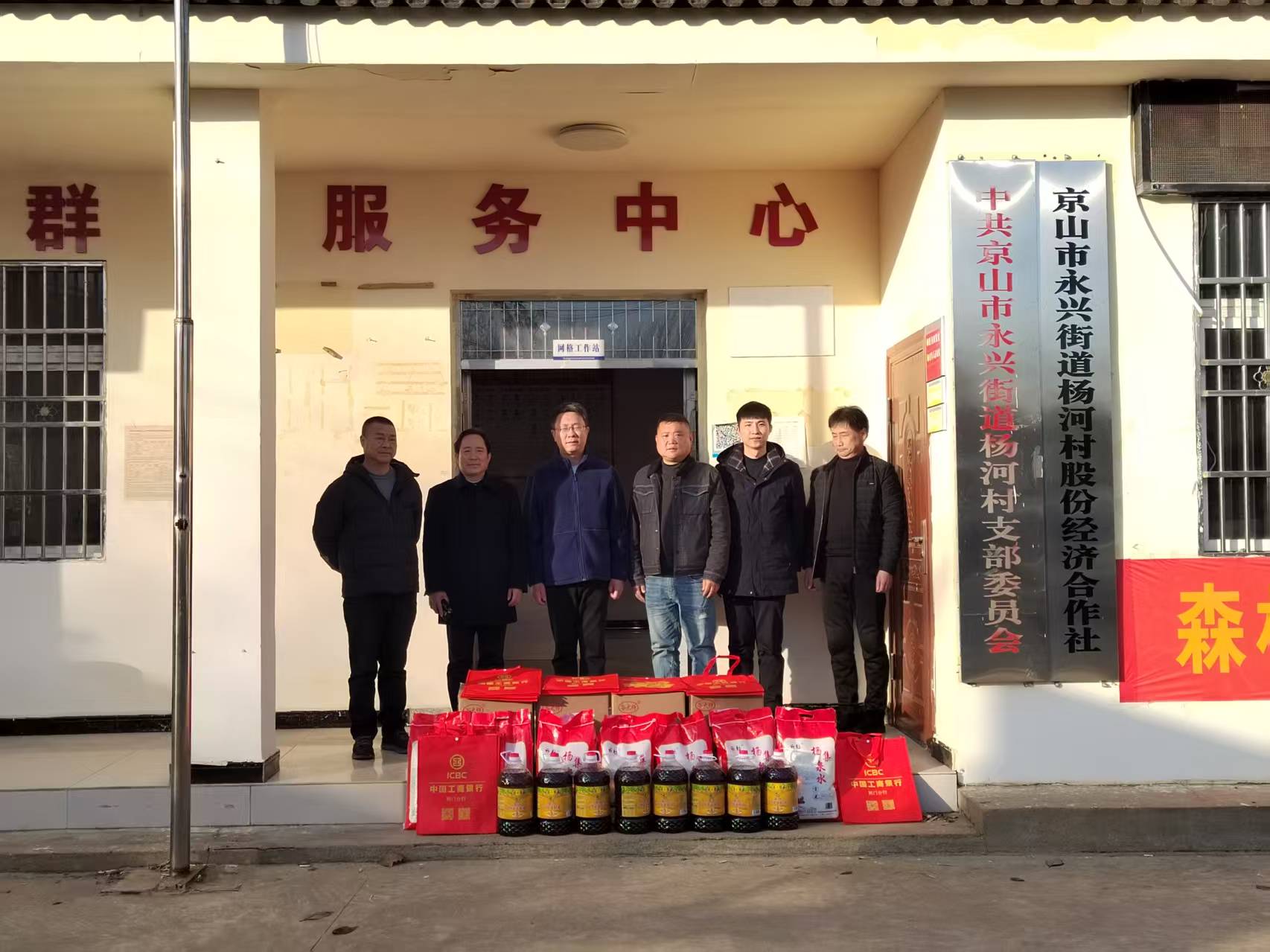 1月15日,中國工商銀行荊門分行行長、黨委書記高幡歷一行來到永興街道楊河村,為該村所有農(nóng)戶送去了新春祝福和慰問物資,60余戶村民收到了“新春暖冬大禮包”。