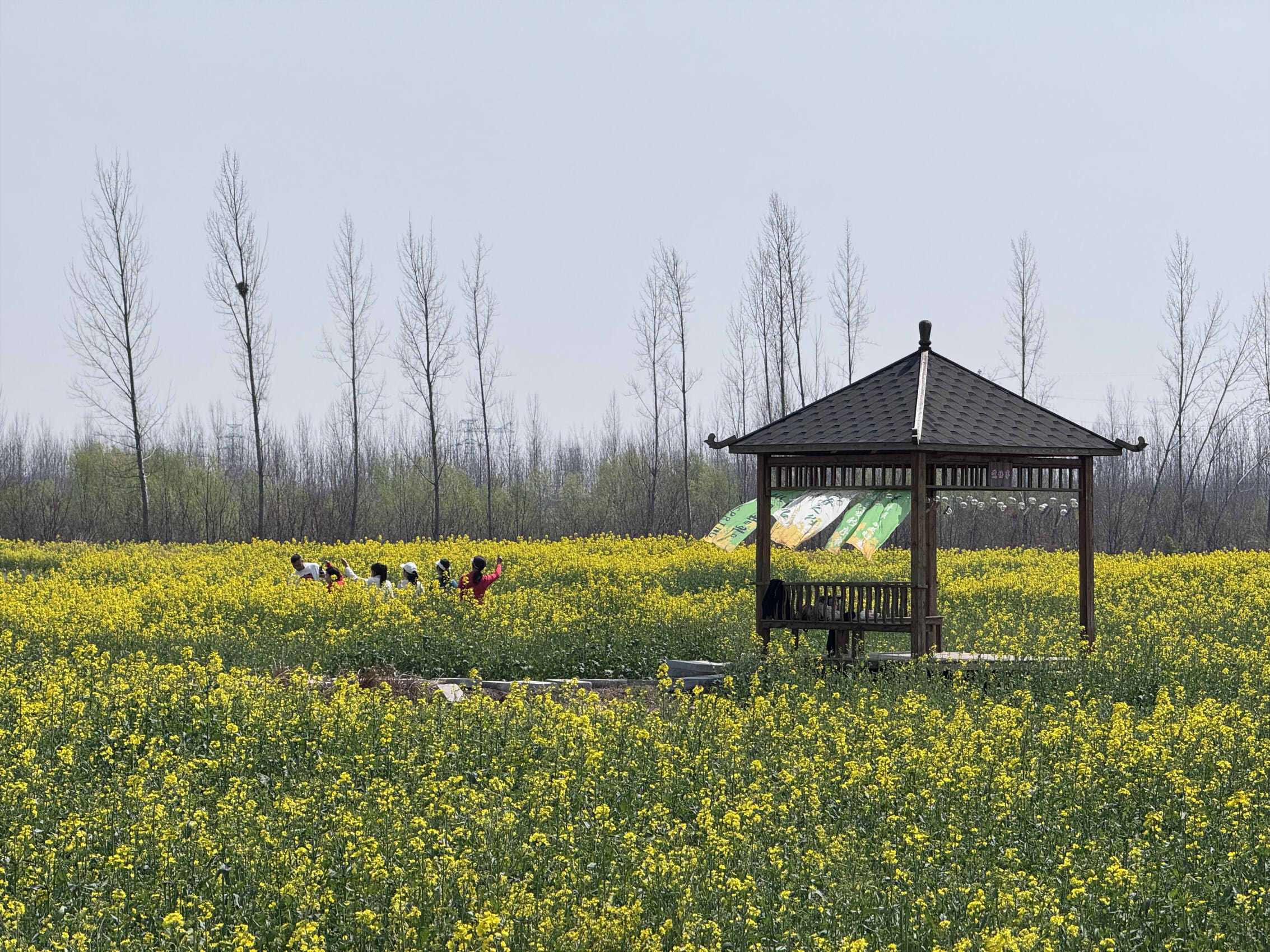 活動(dòng)現(xiàn)場(chǎng),油菜花在田野中競(jìng)相綻放,春風(fēng)拂過千畝“金浪”,蕩漾起陣陣波紋。小吃、手工攤位燃起“煙火氣”,數(shù)名游客、直播網(wǎng)紅在“畫”中漫步嬉戲,邂逅春日浪漫,一幅春色正濃、油菜正艷的美景盡收眼底。