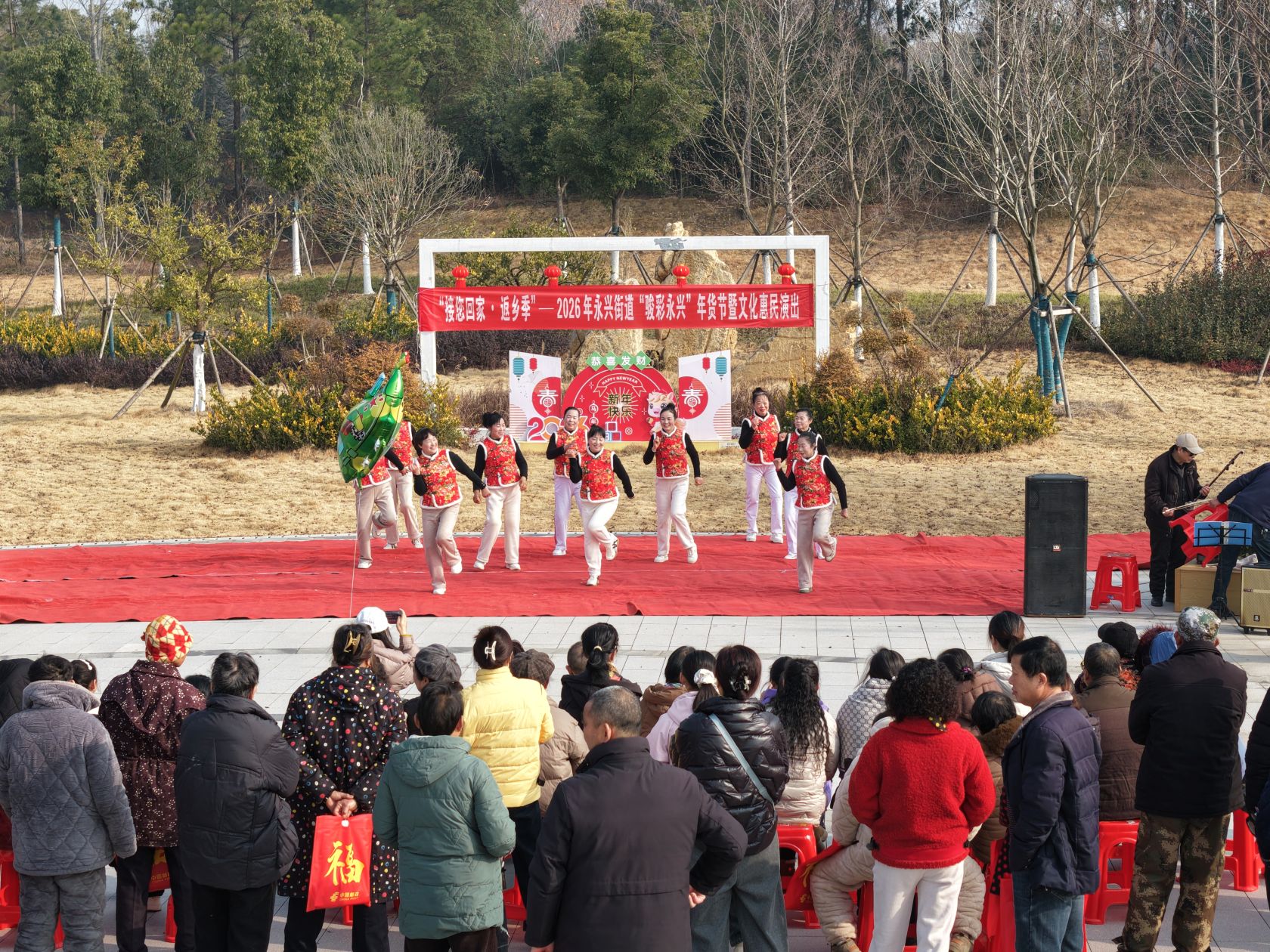 活動(dòng)現(xiàn)場(chǎng)亮點(diǎn)紛呈:18家年貨、小吃、水果等攤位有序排布,群眾穿梭選購(gòu),濃厚消費(fèi)氣息撲面而來;“春聯(lián)納?!眳^(qū),書法家揮毫潑墨,一副副吉祥春聯(lián)贈(zèng)送給群眾,承載著大家對(duì)新年的美好期許;“文藝助興”展演中,歡樂大鼓、歌舞、情景劇等15個(gè)精彩節(jié)目輪番上演,本土網(wǎng)紅同步直播,將年味傳遞至千家萬(wàn)戶。