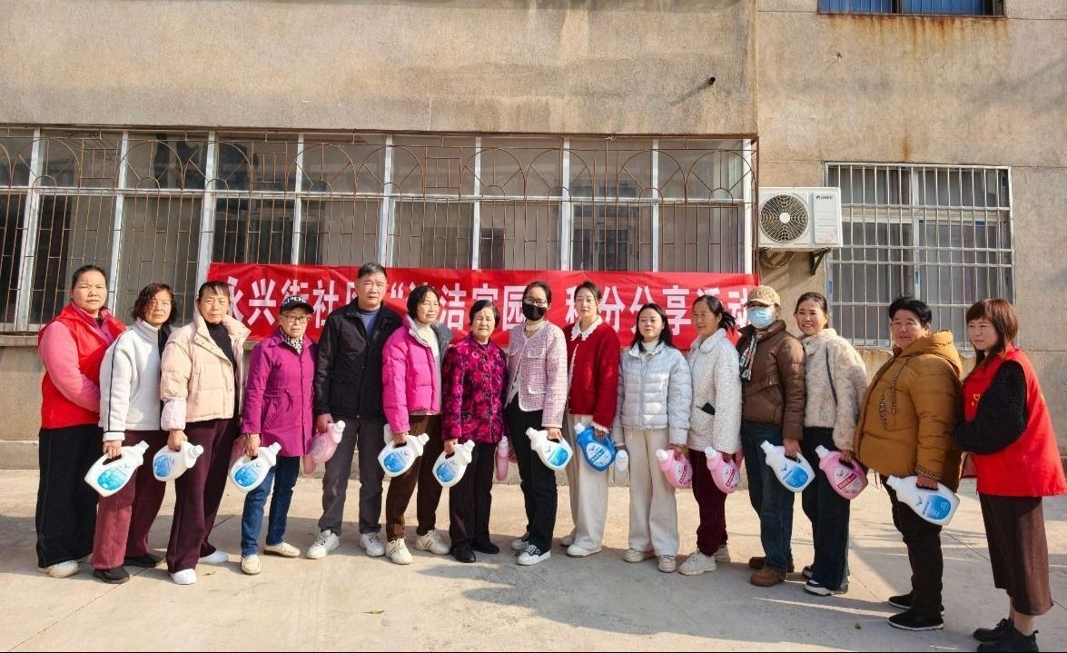 3月12日,永興街道永興街社區(qū)組織開展“清潔家園”積分分享活動,為20余名居民志愿者兌換洗衣液、紙巾等獎勵物資。