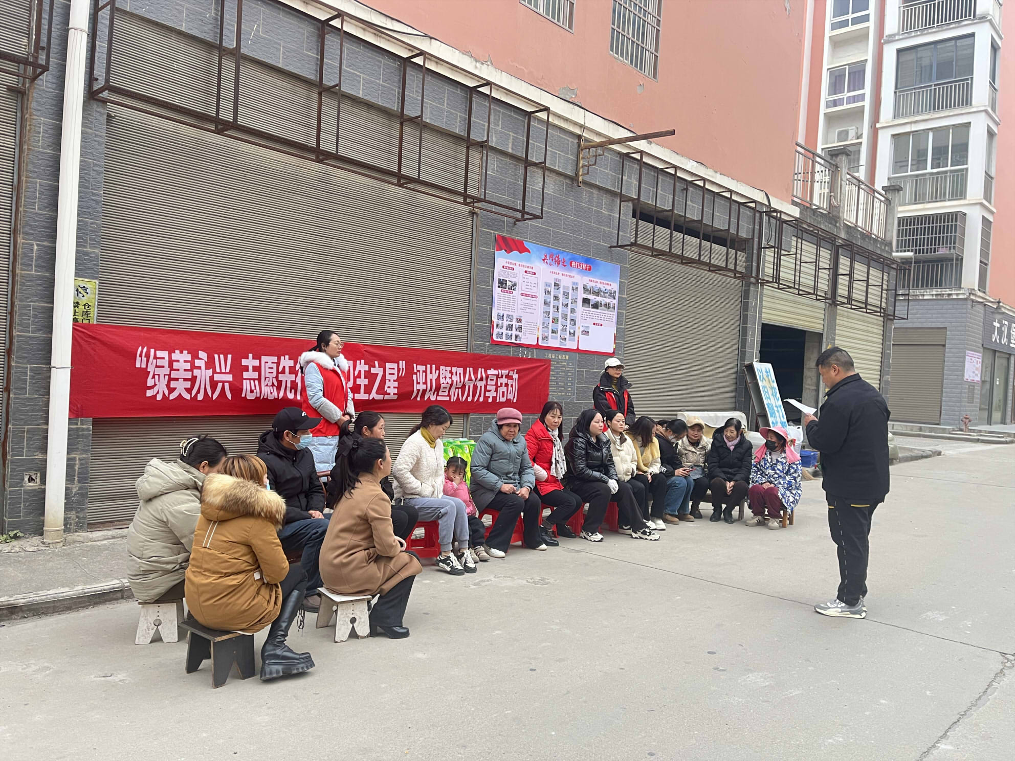 12月19日,永興街道永興街社區(qū)組織社區(qū)干部、小區(qū)“自管委”、黨員中心戶和部分居民代表,在步行街小區(qū)“議事點(diǎn)”舉辦了“綠美永興,志愿先行”衛(wèi)生之星評(píng)比暨“積分分享”兌換活動(dòng),20余名評(píng)比先進(jìn)、積分靠前...