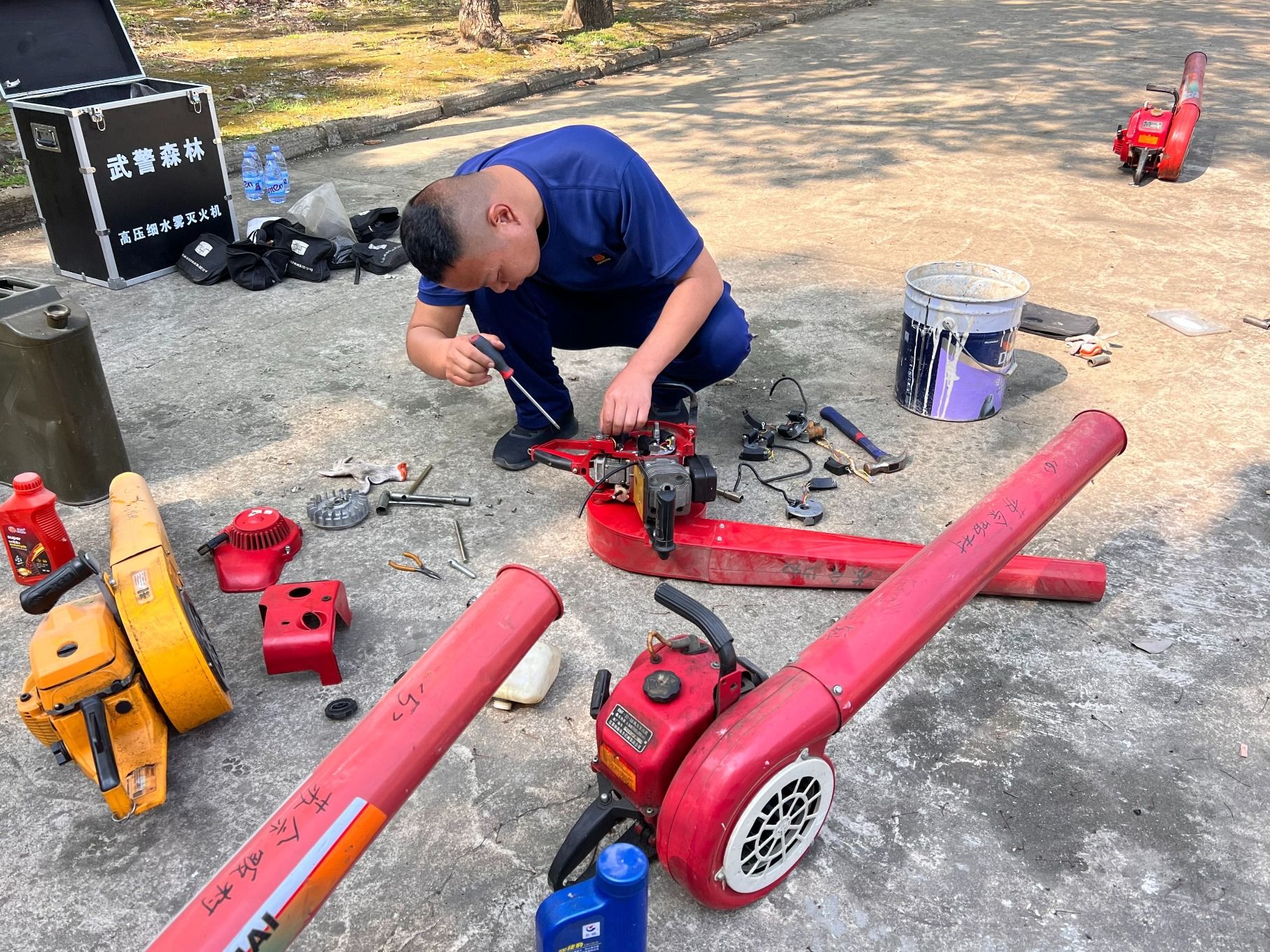 “要對(duì)損害的零件進(jìn)行及時(shí)維修和更換,補(bǔ)充備用機(jī)油、汽油,使滅火機(jī)具性能保持最佳狀態(tài),萬一發(fā)生火情和突發(fā)事件就能夠及時(shí)處置……”4月8日,永興街道農(nóng)業(yè)農(nóng)村局組織20余名半專業(yè)撲火隊(duì)員,對(duì)森林防滅火機(jī)具設(shè)