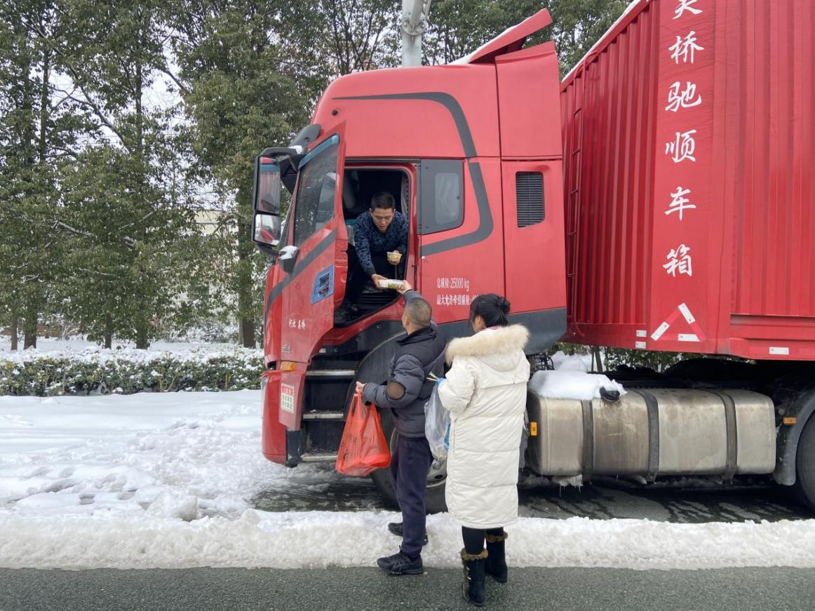 2月6日,在永興街道潘嶺村,許廣高速穿境而過,由于此前路面結(jié)冰嚴(yán)重、路滑堵車,車輛滯留在高速路上,如一條臥龍無法行駛,四處只見田野、山巒、道路被皚皚白雪覆蓋??吹接琅d街道新時(shí)代文明實(shí)踐所“志愿紅”志愿