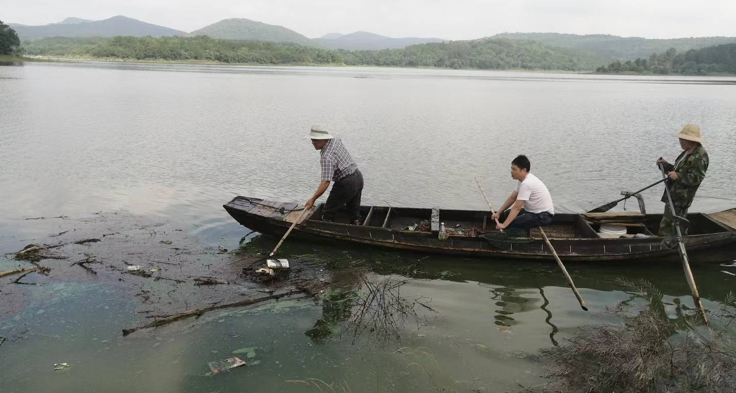 7月26日,走進京山市永興街道汀河村汀河水庫,由村級河湖長、村內黨員、熱心群眾組成的“環(huán)保衛(wèi)士”們正在水庫旁清理水域垃圾,對雜草、枯枝、生活垃圾進行清理裝袋。另一邊,群光村主干道上,村兩委干部正帶領熱