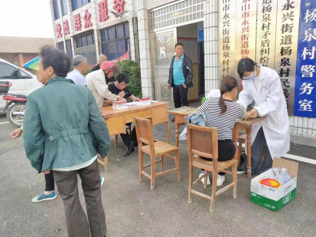 9月27日,在永興街道楊泉村黨員群眾服務(wù)中心門口,市血防站工作人員正在免費(fèi)為村民進(jìn)行血吸蟲病抽血檢查。據(jù)悉,工作人員還主動(dòng)為村民講解預(yù)防血吸蟲病的日常注意事項(xiàng),為村民普及預(yù)防知識(shí),筑牢村民生命健康防線