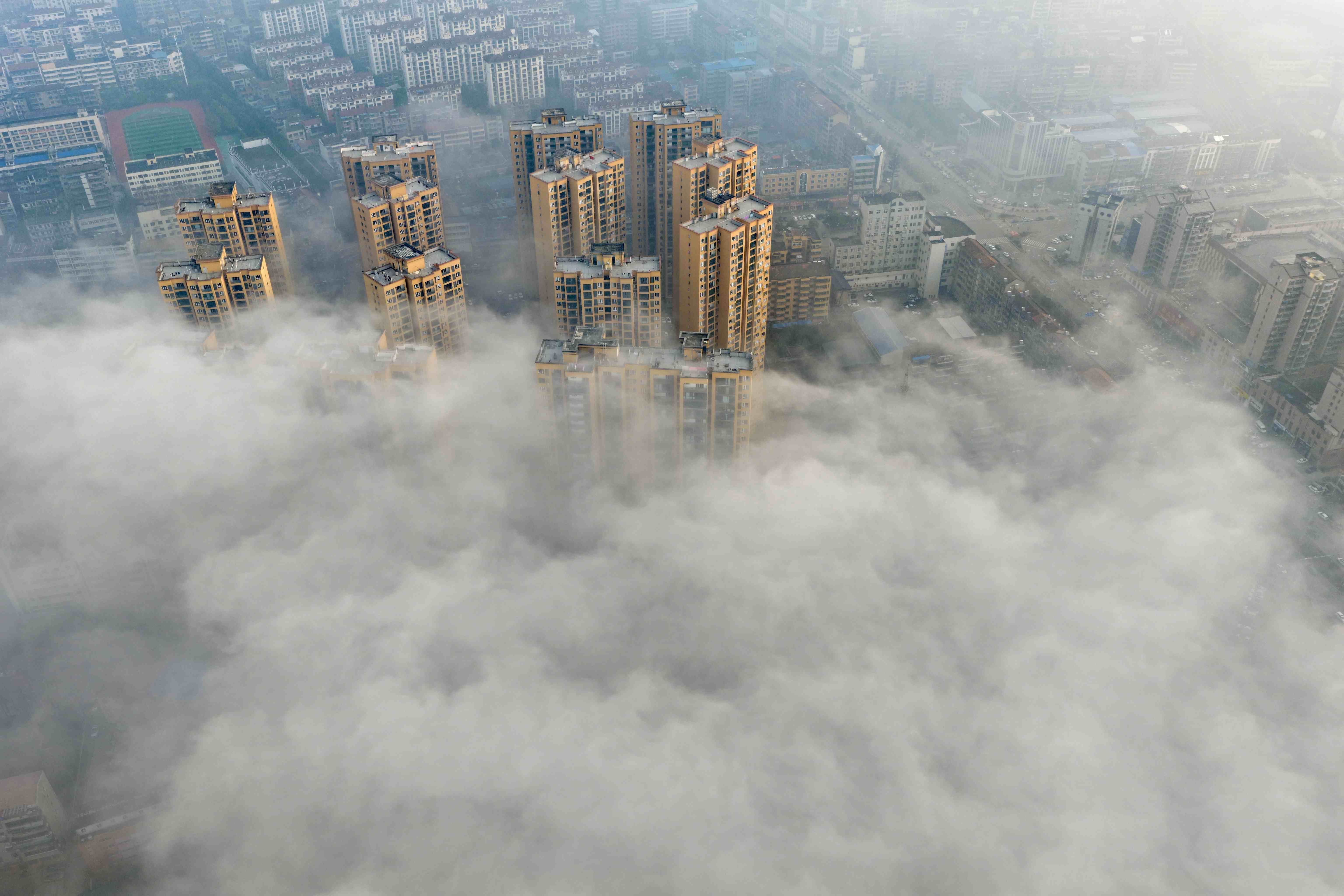 京山:晨霧繚繞 樓宇隱現(xiàn)如入仙境