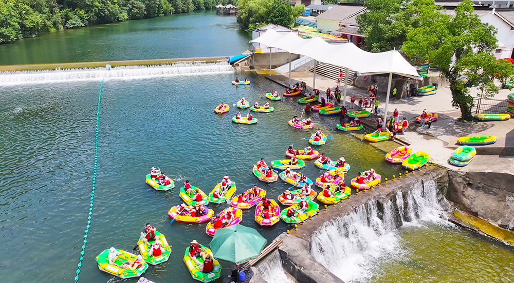 據(jù)了解,鴛鴦溪漂流全程約5公里,蜿蜒于峽谷之間,兩岸綠樹成蔭,景色宜人。無論是年輕人追求的刺激,還是家庭游客享受的親子時光,鴛鴦溪漂流都能滿足。