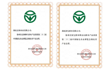 9月25日至27日,第二十三屆中國(guó)綠色食品博覽會(huì)暨第十六屆中國(guó)國(guó)際有機(jī)食品博覽會(huì)在寧夏銀川落幕,湖北國(guó)寶橋米有限公司的京山橋米、京和米業(yè)有限公司的巧香米,雙雙斬獲 “第23屆中國(guó)綠色食品博覽會(huì)(湖北)產(chǎn)品金獎(jiǎng)”。