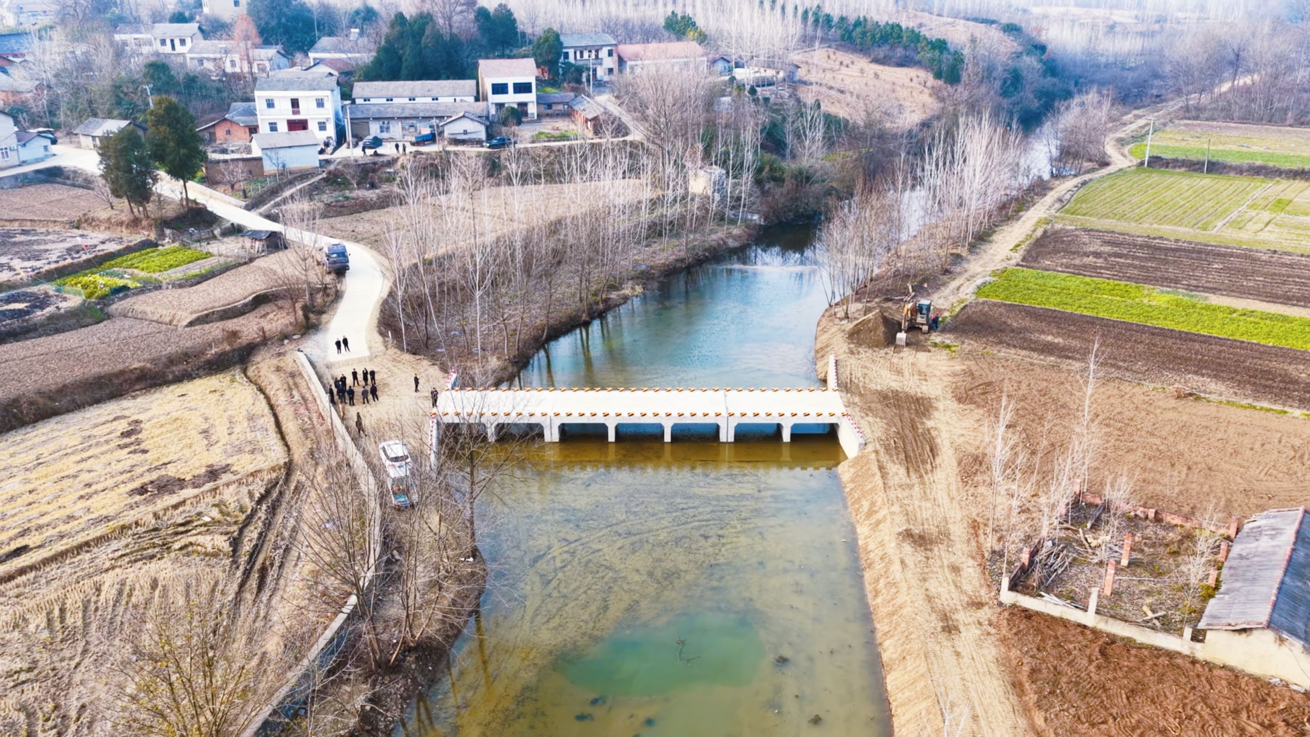 12月9日,冬日暖陽照耀大地,三陽鎮(zhèn)黃家社區(qū)挑水河上一座嶄新的橋梁架起,將兩岸村莊緊緊地連在一起。沿岸村民奔走相告:橋通了、橋通了!以后出行太方便了!