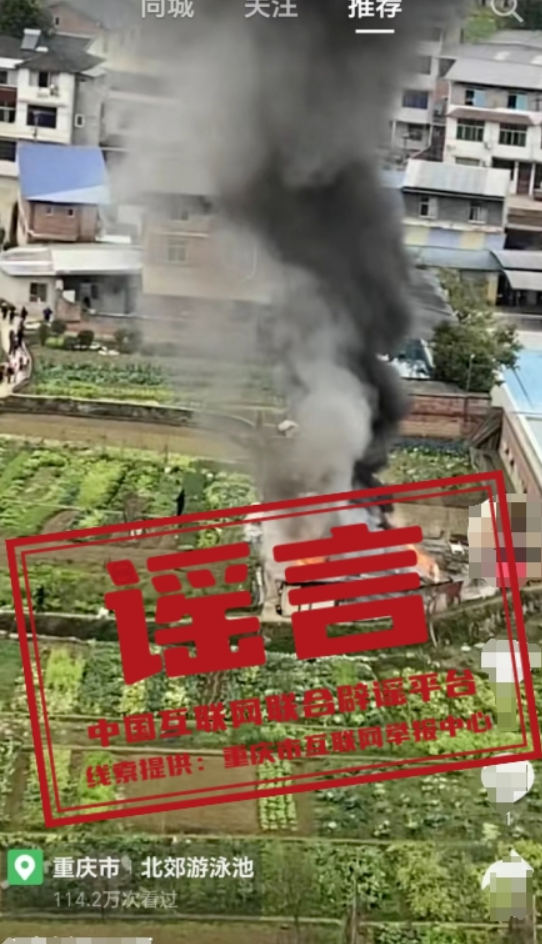 | 今日辟謠 謠 言 重慶南川幾個小孩把他人房子燒了?真相:近日,網(wǎng)傳重慶南川“幾個小孩子把別人房子燒了”,該視頻IP定位為“重慶市北郊游泳池”,畫面顯示一民房處于著火狀態(tài),引發(fā)關注。經(jīng)重慶南川警方調查 |