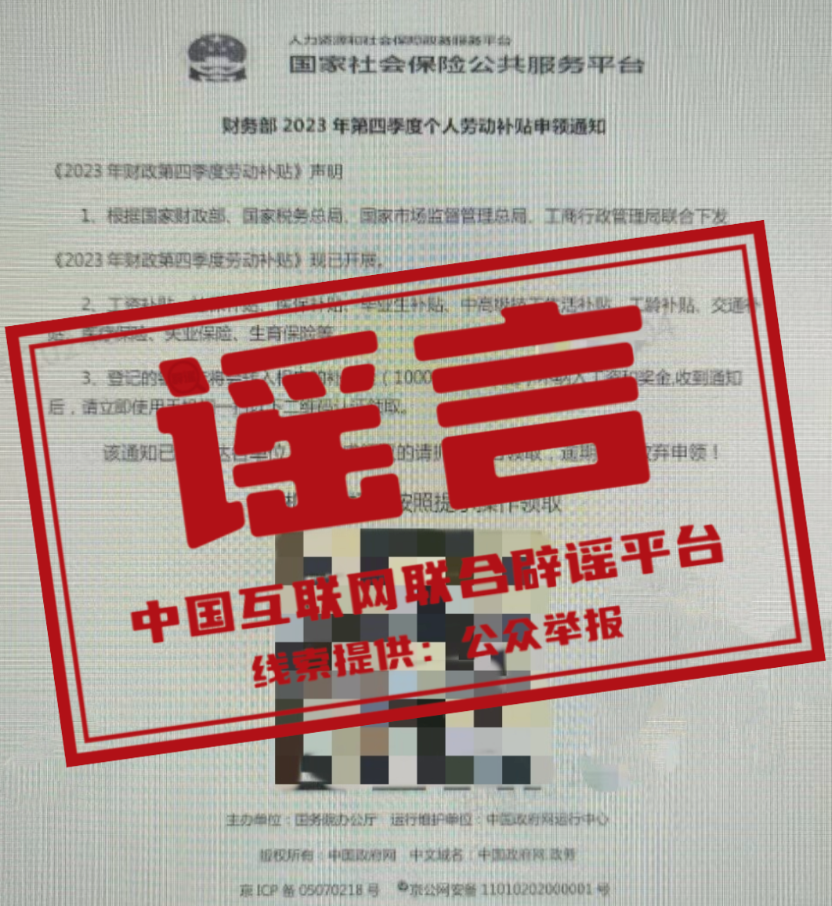 | 今日辟謠 謠 言 掃碼可以領(lǐng)取“2023年四季度補(bǔ)貼”?真相:所謂網(wǎng)傳“財(cái)務(wù)部2023年第四季度個人勞動補(bǔ)貼申請的通知”涉嫌詐騙。此類騙術(shù)中,騙子先用非法手段攻破公司的企業(yè)郵箱或者個人郵箱,然后以公 |