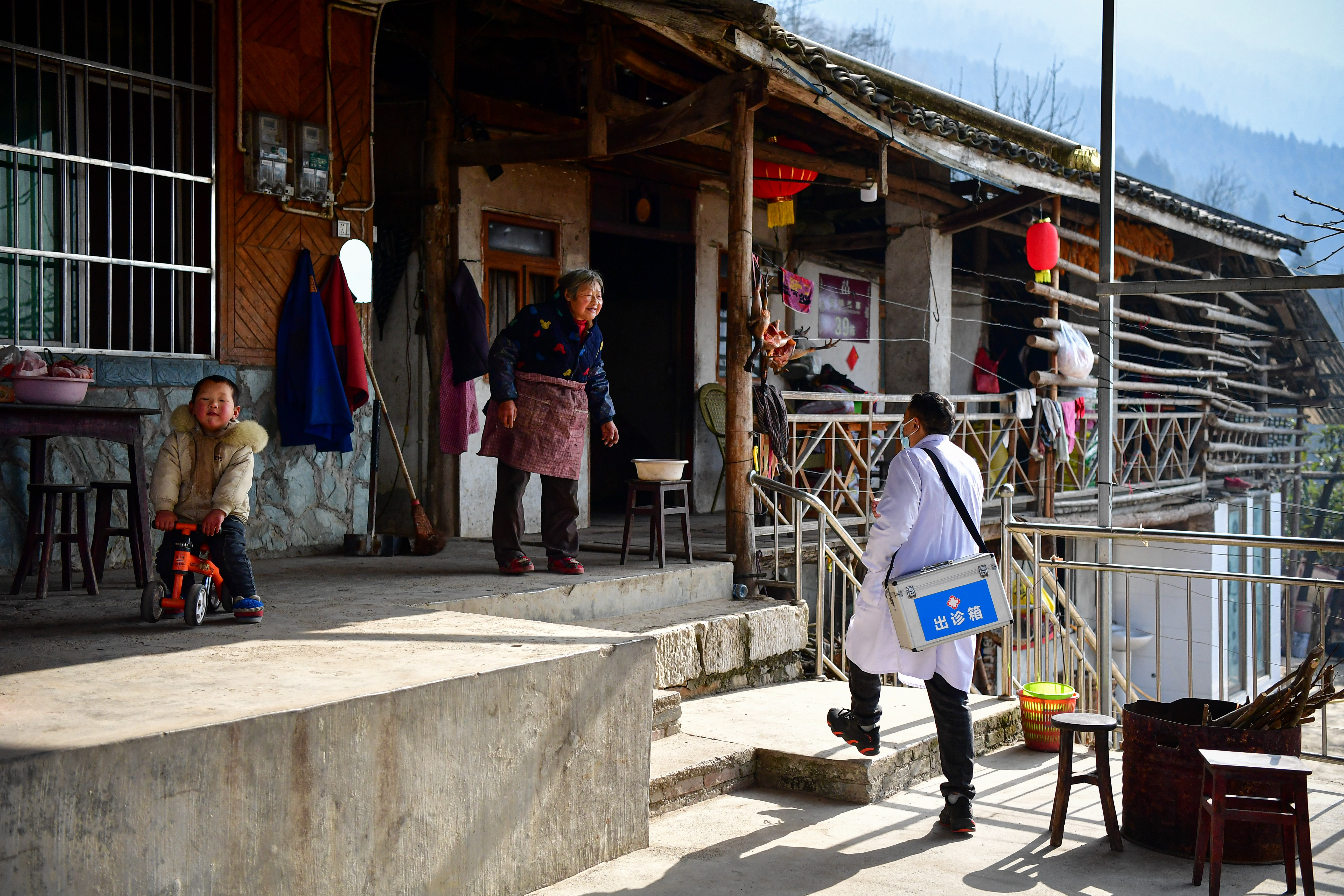 1月19日,在北川縣曲山鎮(zhèn)石椅村,村醫(yī)趙太安入戶走訪重點人群。新華社記者 張超群 攝