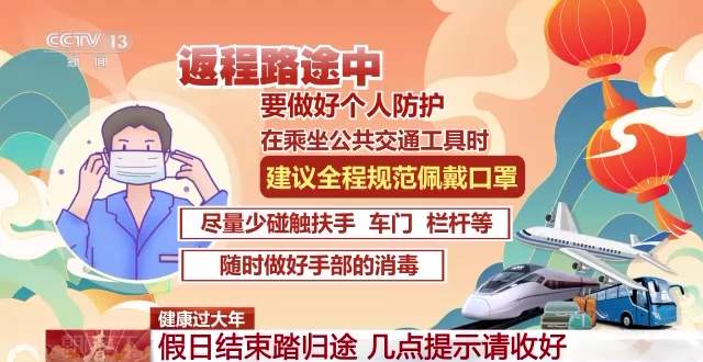 健康過大年,專家來支招。今天是春節(jié)假期的最后一天了,很多人都踏上了離開家鄉(xiāng)返回居住地的路途。這個時候可能和假期開始的時候相比,大家已經(jīng)比較疲勞。專家提示,返程中依然還要做好個人防護(hù),注意自己的健康狀態(tài)。