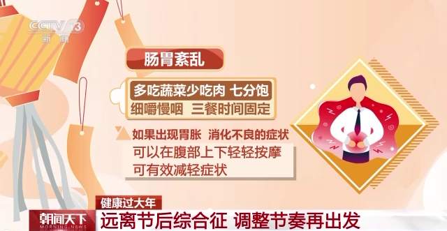 腸胃紊亂:多吃蔬菜少吃肉,七分飽,細(xì)嚼慢咽,三餐時間固定。如果出現(xiàn)胃脹、消化不良的癥狀,可以在腹部上下輕輕按摩,可有效減輕癥狀。