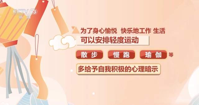 另外,為了身心愉悅,快樂地工作、生活,可以安排輕度運(yùn)動,如散步、慢跑、瑜伽等,也請多給予自我積極的心理暗示。
