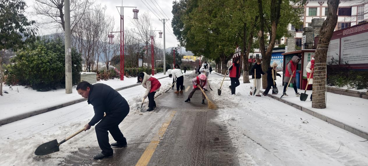 溫泉街道組織機關干部鏟除積雪。