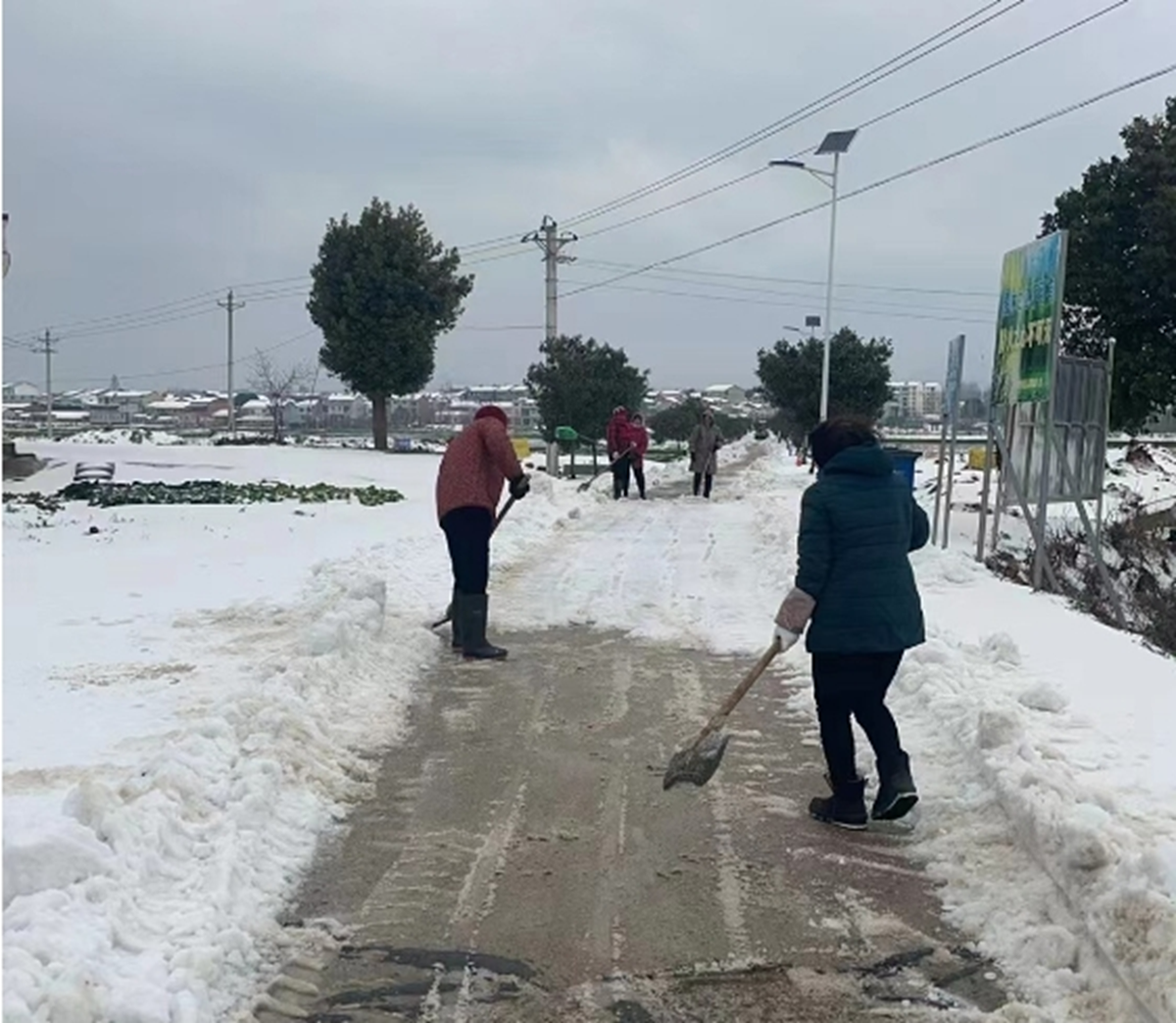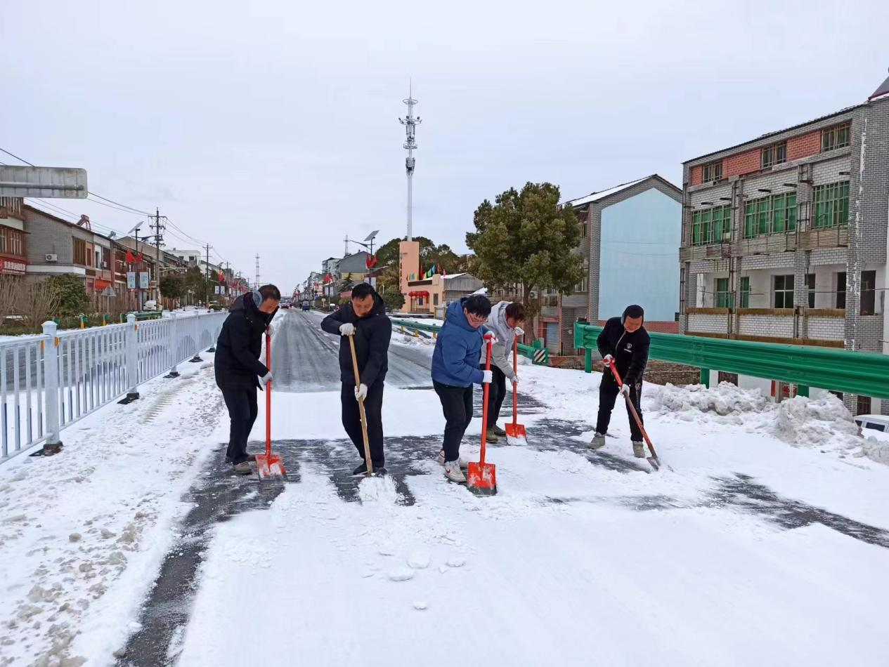 孫橋鎮(zhèn)組織黨員干部群眾除雪鏟冰,保障道路通暢及安全。