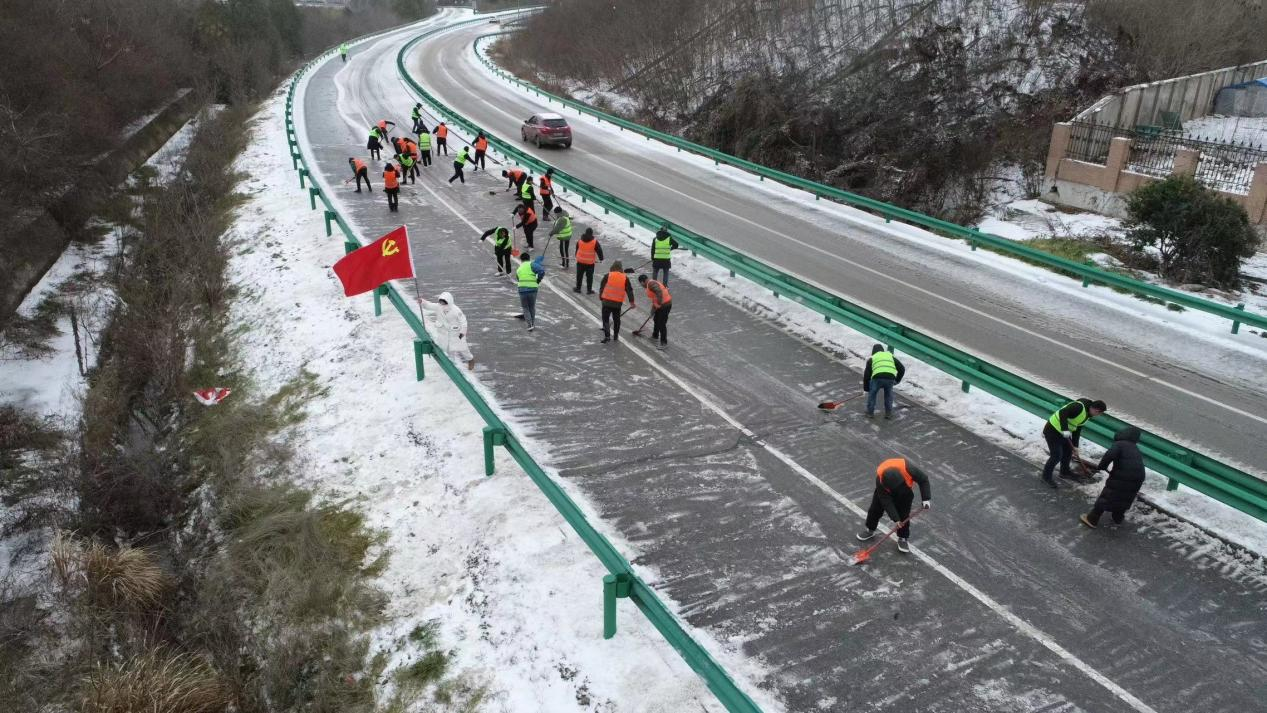 市水利和湖泊局組織黨員干部除雪鏟冰,保障道路通暢及安全。