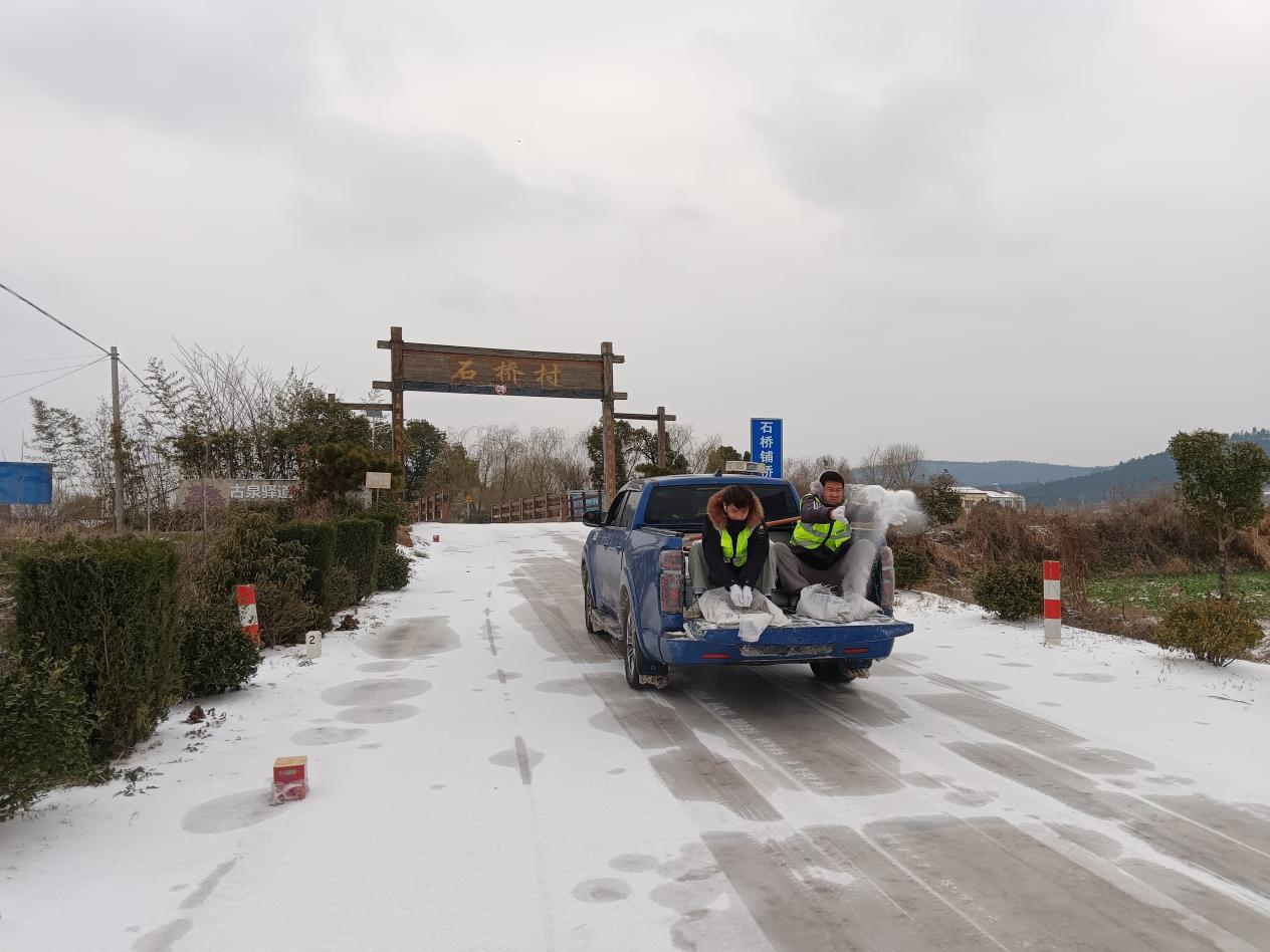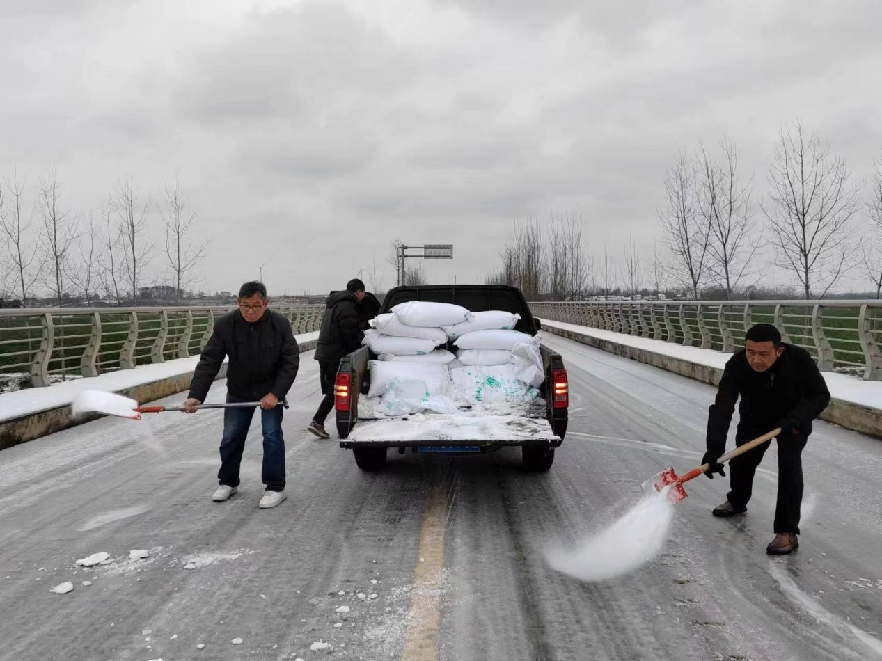 錢(qián)場(chǎng)鎮(zhèn)組織機(jī)關(guān)干部到武荊高速段鋪撒工業(yè)鹽,助力清雪防滑工作。