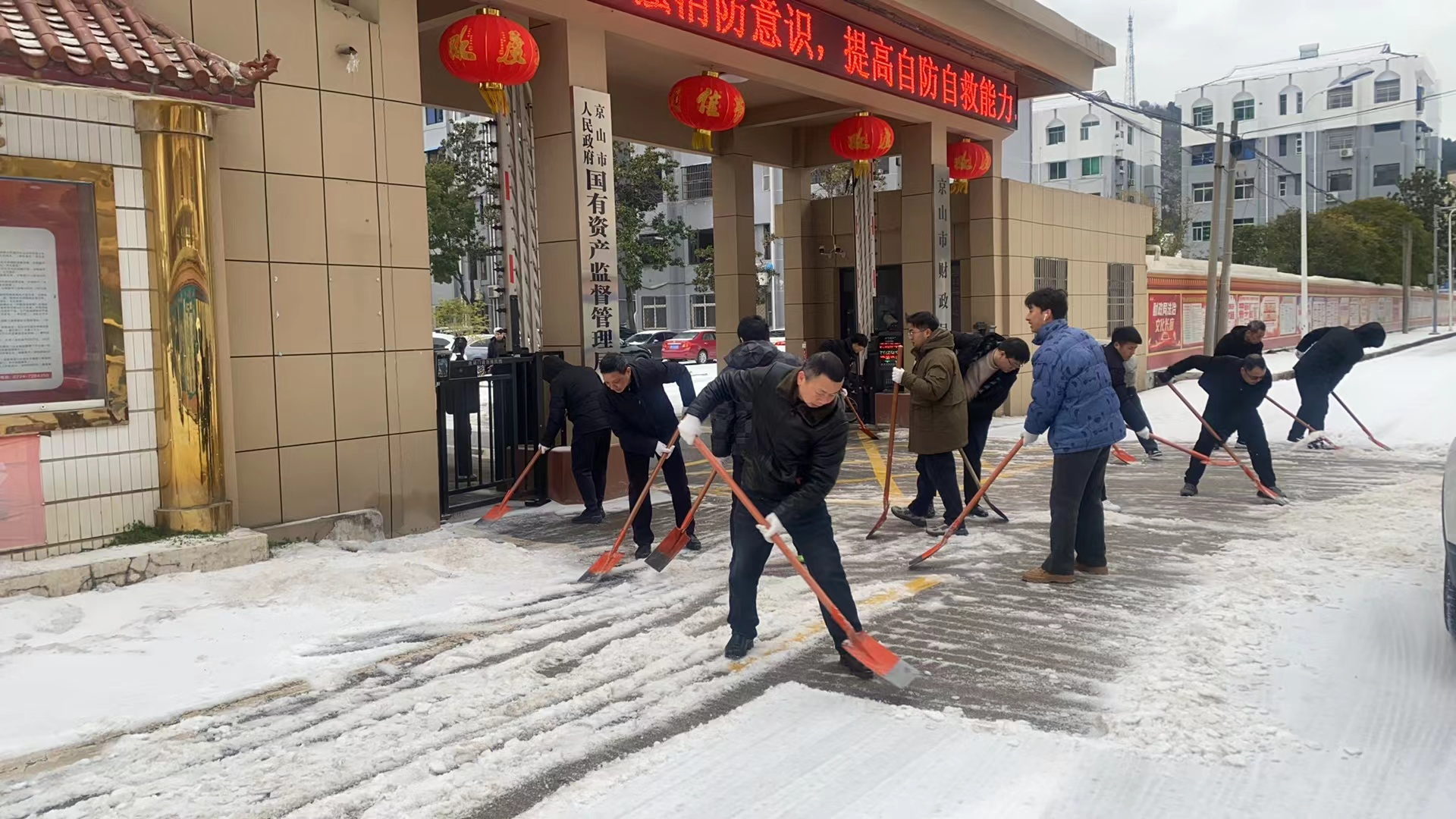 | 2月21日至22日,市財(cái)政局干部職工手持鐵鍬、掃帚等工具,走上街頭開(kāi)展義務(wù)掃雪活動(dòng),清掃路面積雪,保障大家出行,共同維護(hù)京山美好的城市環(huán)境。干部職工一行先后來(lái)到楊堰灣路、任畈路開(kāi)展鏟冰除雪工作。大家揮 |