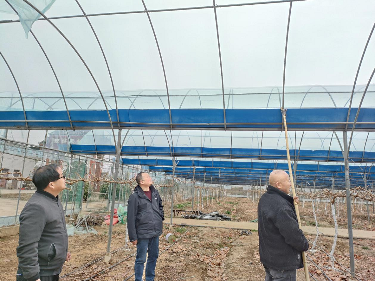 | “幸虧農(nóng)技專家及時(shí)提醒,我們組織工人連夜除冰增溫,十幾個(gè)葡萄大棚經(jīng)受住了昨晚大雪的考驗(yàn),沒(méi)有受到損失?!?月22日下午,京山市孫橋鎮(zhèn)禾之果現(xiàn)代農(nóng)業(yè)產(chǎn)業(yè)園經(jīng)理熊行兵對(duì)前來(lái)查看大棚情況的農(nóng)技人員李琴連連道 |