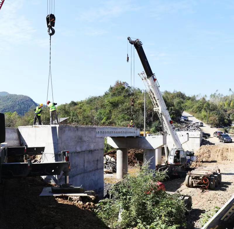 | 10月12日,記者在綠林鎮(zhèn)全力村全力橋梁施工現(xiàn)場看到,大型機(jī)械正在吊裝預(yù)制件進(jìn)行橋面鋪設(shè),用不了多久,該橋即將竣工終圓村民出行夢。全力橋是全力村通往高關(guān)水庫的控制性工程。以前該村為漫水橋,每逢河道汛期 |