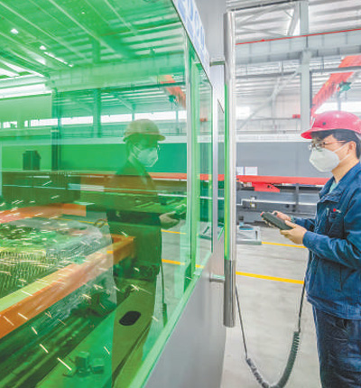華工科技的工程師在調(diào)試激光切割機(jī)。