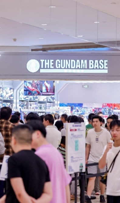 武漢天地壹方南館高達(dá)店鋪擠滿排隊(duì)的年輕人。