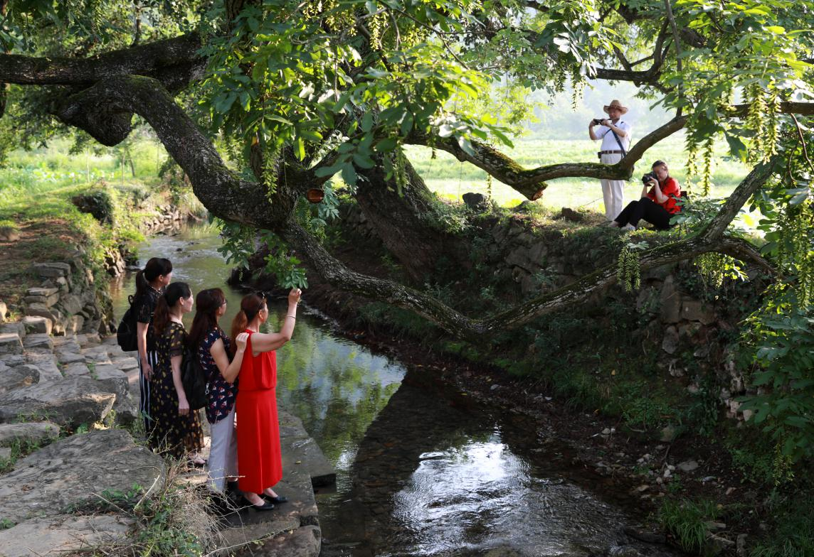 村里依托古村、古橋、古樹等特色資源,打造文旅新亮點(diǎn)。夏季旅游旺季,游客們在葡萄架下體驗(yàn)采摘樂趣,漫步田間欣賞荷花美景,在農(nóng)家樂品嘗農(nóng)家美食,盡享鄉(xiāng)村慢生活。