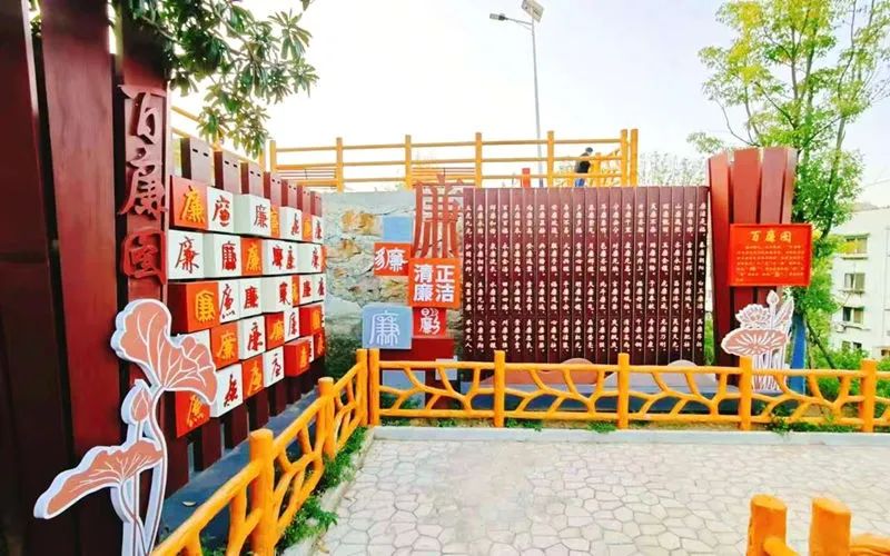 該口袋公園位于三峽路一側(cè),占地面積1200平方米,以“融廉于景,化廉于心”為主題,依山就勢打造觀賞性強、趣味性強的廉政微景觀,讓市民在休閑娛樂的同時感受廉政文化。