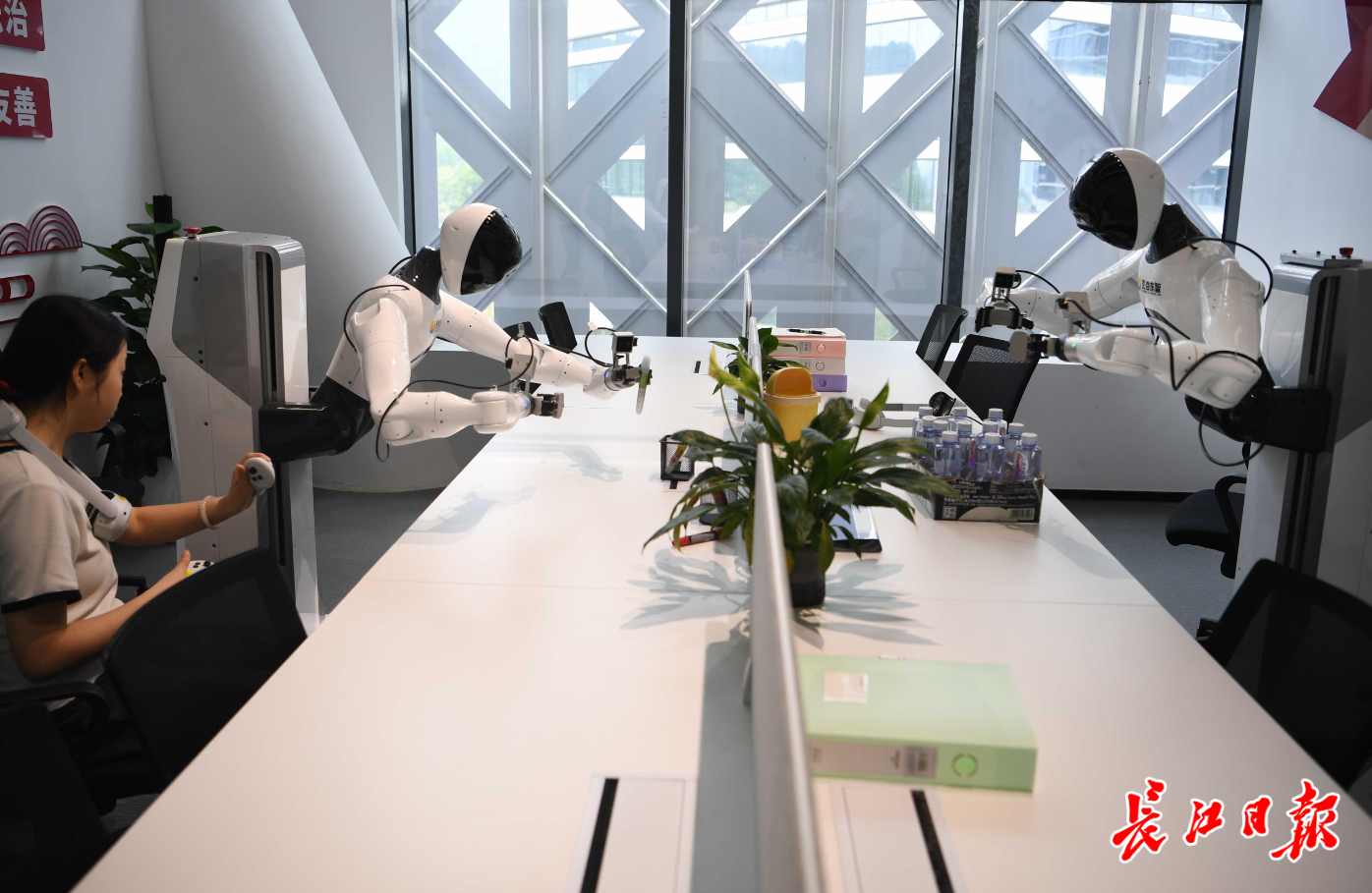 走進(jìn)武漢灝存科技有限公司,調(diào)研組成員穿上傳感器設(shè)備,體驗(yàn)隔空操控機(jī)械臂倒水,動(dòng)作流暢無延遲。企業(yè)董事長(zhǎng)熊鵬航介紹:“即使手指轉(zhuǎn)動(dòng)千分之一度,也能被敏銳捕捉并完美復(fù)刻,穩(wěn)定度堪比經(jīng)驗(yàn)豐富的醫(yī)生。”
