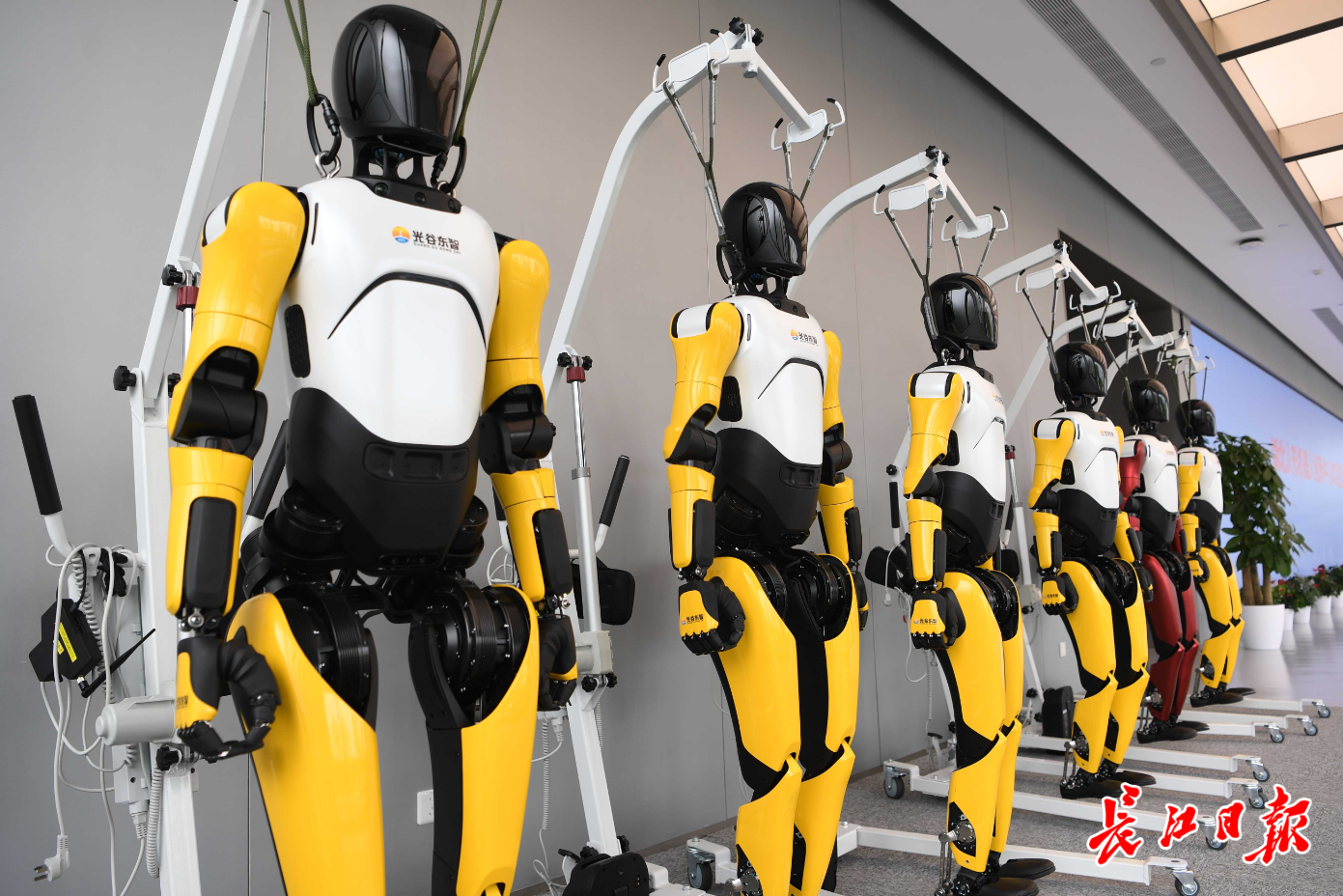 在光谷,劉勝院士領(lǐng)銜的“天問”團(tuán)隊(duì)自去年3月起,已成功研發(fā)3款“天問”機(jī)器人和“遠(yuǎn)游”機(jī)器人,并在醫(yī)院、學(xué)校、餐飲等場(chǎng)所“上崗實(shí)習(xí)”。陳學(xué)東院士團(tuán)隊(duì)領(lǐng)銜的格藍(lán)若機(jī)器人公司錨定電力巡檢等方面的開發(fā)應(yīng)用,年內(nèi)有望完成機(jī)器人第一期生產(chǎn)線建設(shè);
