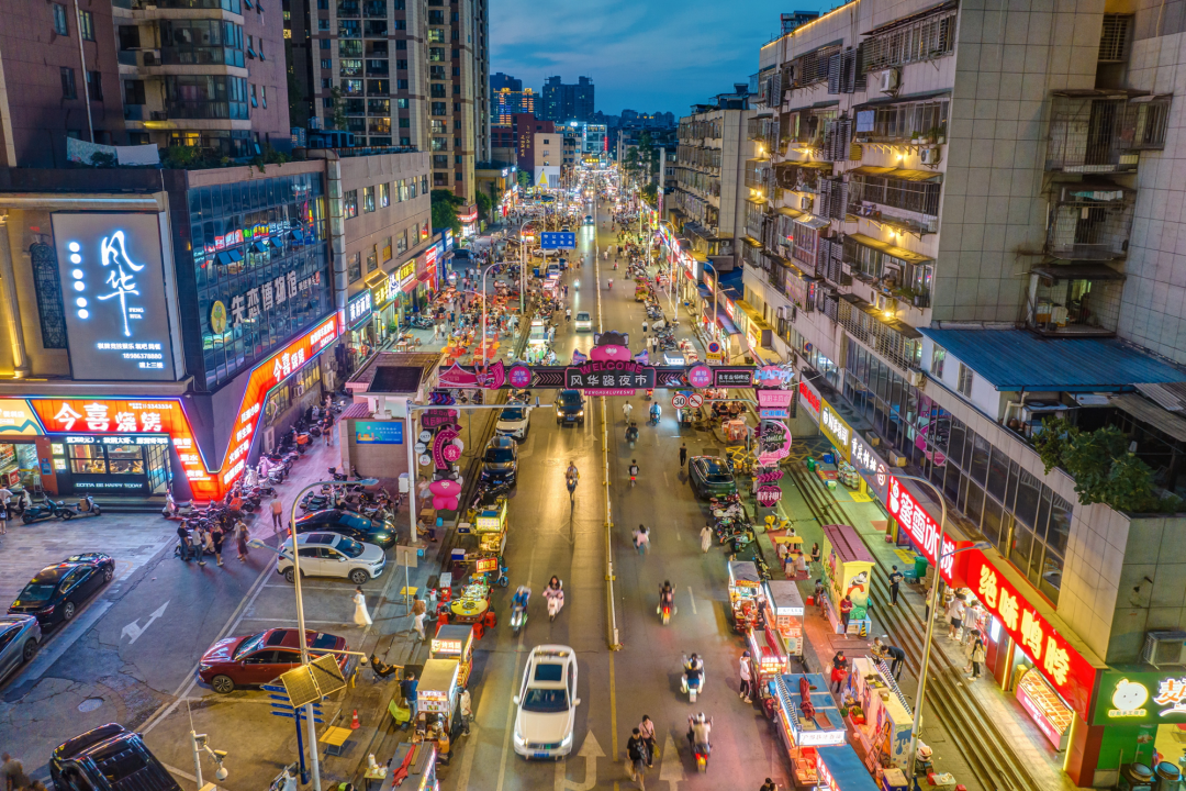 近年來,樊城區(qū)積極推動(dòng)特色街區(qū)建設(shè),風(fēng)華路、振華路、職工街等一條條老舊“餐飲一條街”煥然一新。在風(fēng)華路夜市,昔日的“爭斗”鬧劇已成過往云煙,取而代之的是政府引導(dǎo)下的提檔升級與華麗蛻變。專業(yè)運(yùn)營管理公司的入駐,讓這條夜市在保留傳統(tǒng)風(fēng)貌的同時(shí),更添幾分現(xiàn)代氣息。燈火通明的街巷中,小吃攤販的叫賣聲此起彼伏,游客的歡聲笑語交織成一首動(dòng)聽的夜色交響曲。截至目前,全新的風(fēng)華路夜市,攤戶從最初的百家左右增加到223家,數(shù)量增長超100%;夜市日均客流從今年一季度的5000人,增加至7000人,每家攤位日營收超1000元。