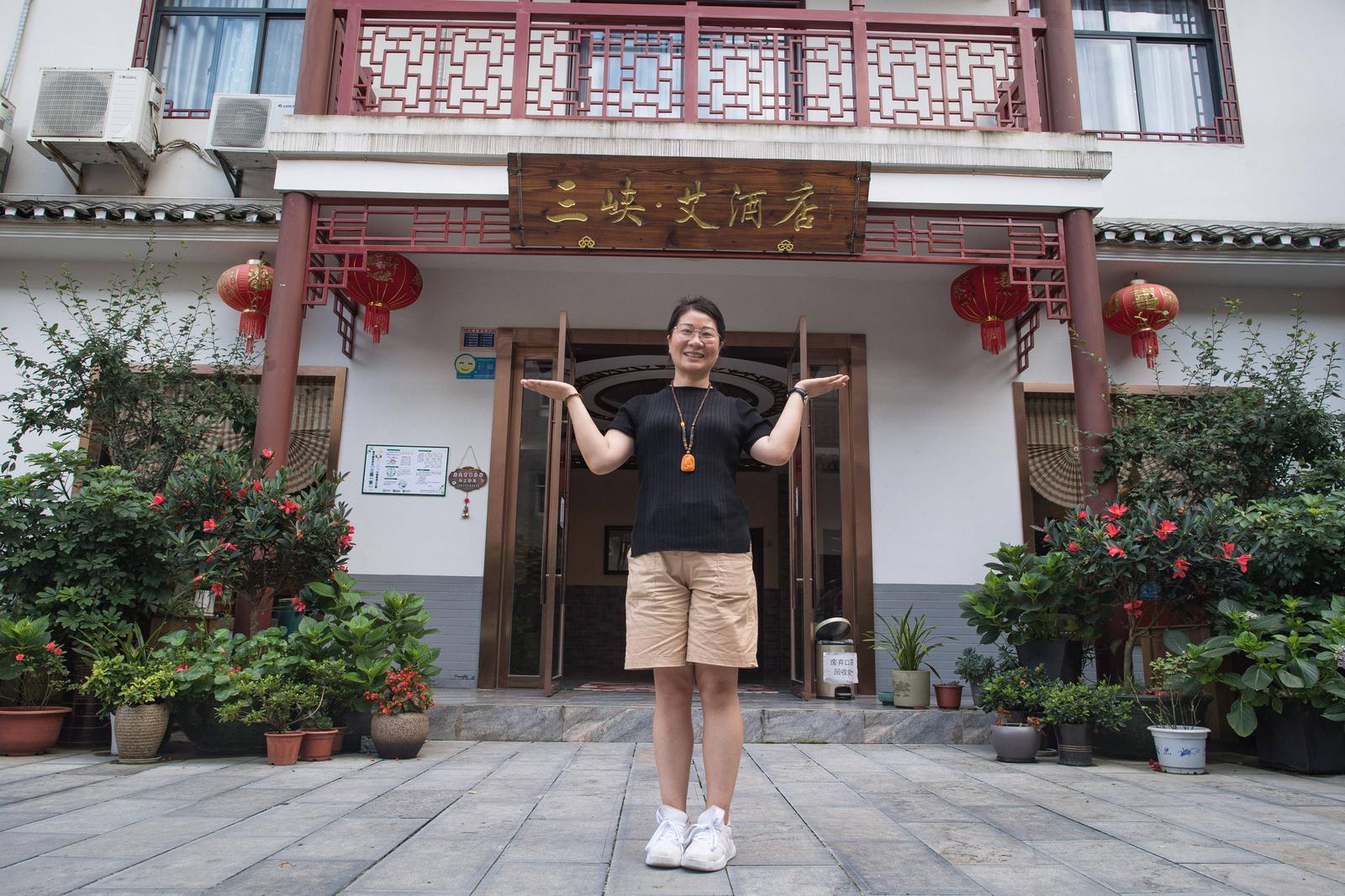 謝蓉展示自己創(chuàng)辦的“三峽·艾”主題民宿酒店。新華社記者 肖藝九 攝