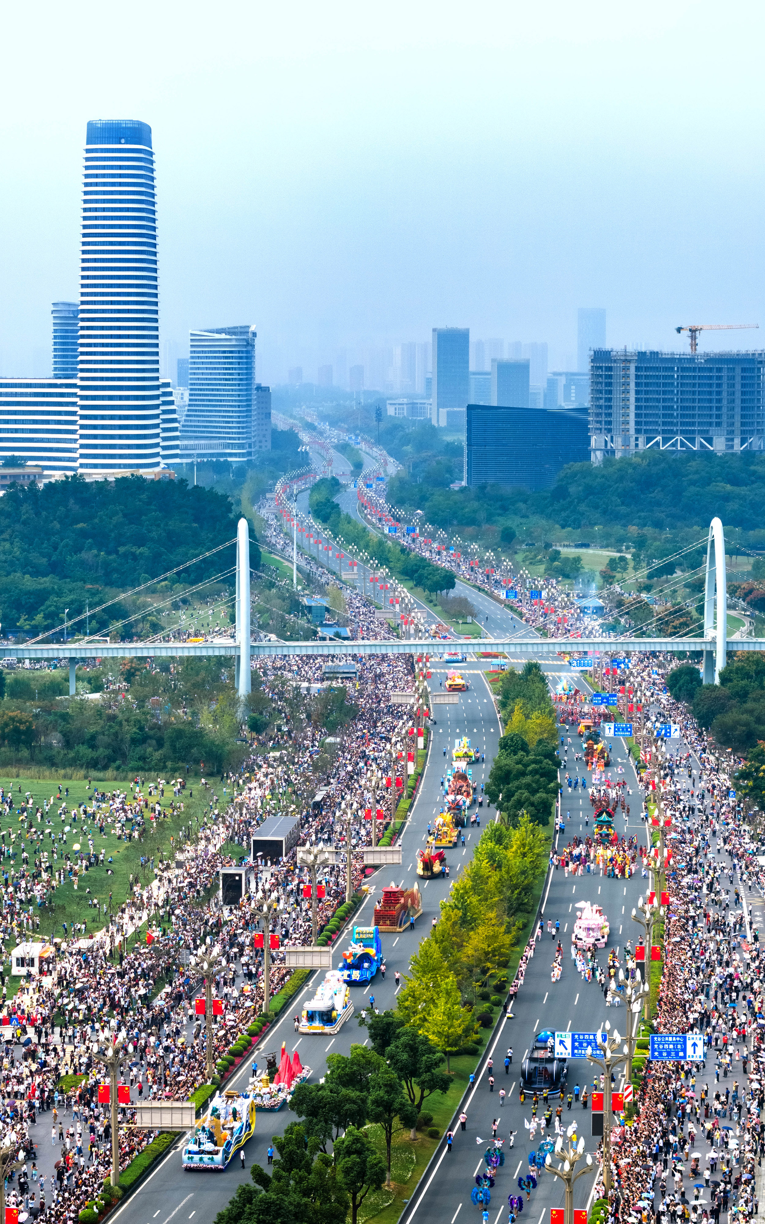 光谷花車(chē)大巡游,10萬(wàn)市民游客共賞河山錦繡。 城市攝影隊(duì) 王玉明攝