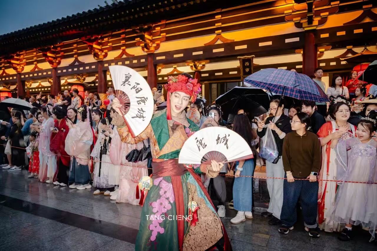 文旅企業(yè)的積極參與,讓這場盛會的體驗維度更加豐富。襄陽旅游年票現(xiàn)場銷售,襄陽華僑城奇幻度假區(qū)工作人員向過往游客推介當(dāng)季主打文旅產(chǎn)品——云海湯泉。堯治河旅游度假區(qū)的大廚參與廚藝比拼,為游客現(xiàn)場烹飪拿手菜。唐城不僅帶來了新潮有趣的文創(chuàng)產(chǎn)品,景區(qū)行走的IP“唐城將軍”更是與一眾NPC人物巡游,與游客互動。